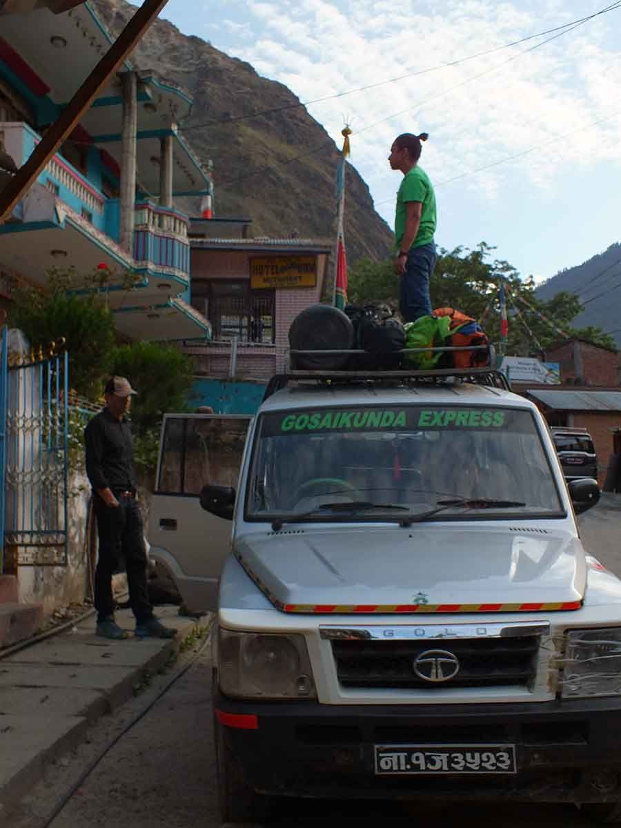 lkwverladenBesonders betroffen war hierbei unter anderem das Langtang Tal, ca. 60 – 70 km nördlich der Hauptstadt Kathmandu gelegen. Das Tal ist von Kathmandu aus über täglich mehrfach verkehrende Busse oder Geländewagen in 6 - 9 Stunden über den am Talausgang gelegenen Ort Siabru Bensi zu erreichen.